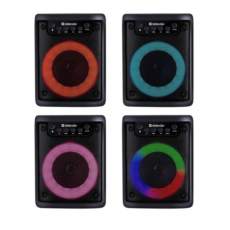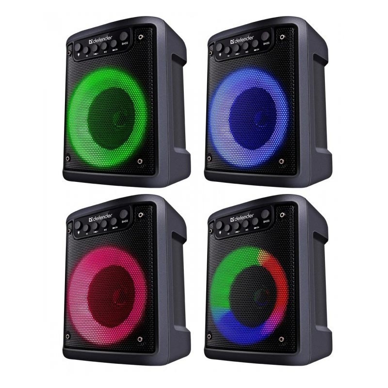 Coluna Bluetooth portátil Defender Funky - Potência compacta com efeitos LED RGB
