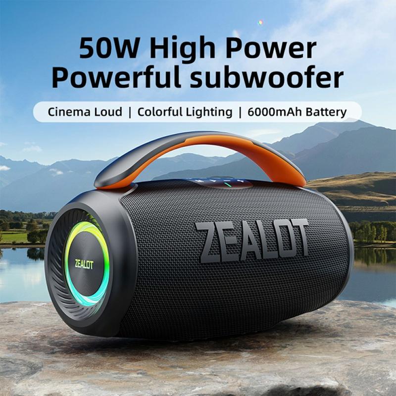 Coluna Bluetooth 5.3 portátil Zealot P11 50W - Luz RGB, Subwoofer TWS Bass