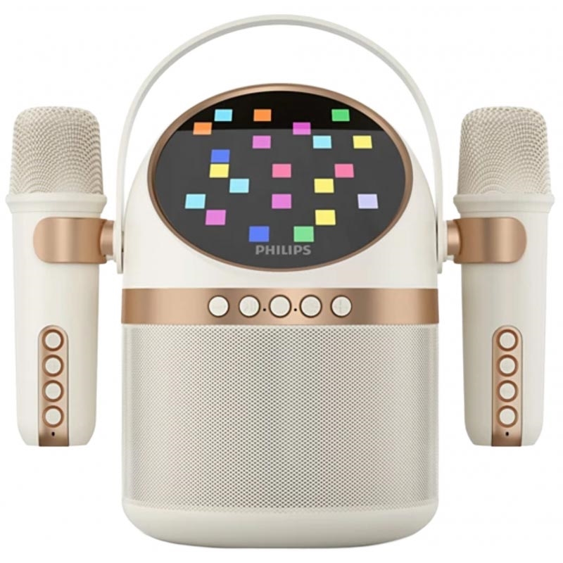 Se você quer um alto-falante compacto que faça mais do que apenas reproduzir música, este modelo da Philips é uma ótima escolha. Você tem karaokê pronto para usar com 2 microfones sem fio, efeitos vocais divertidos e modos de LED que transformam a simples audição em um evento. A bateria de longa duração, várias opções de reprodução e carregamento USB-C tornam-no conveniente tanto para uso diário quanto para ocasiões especiais.