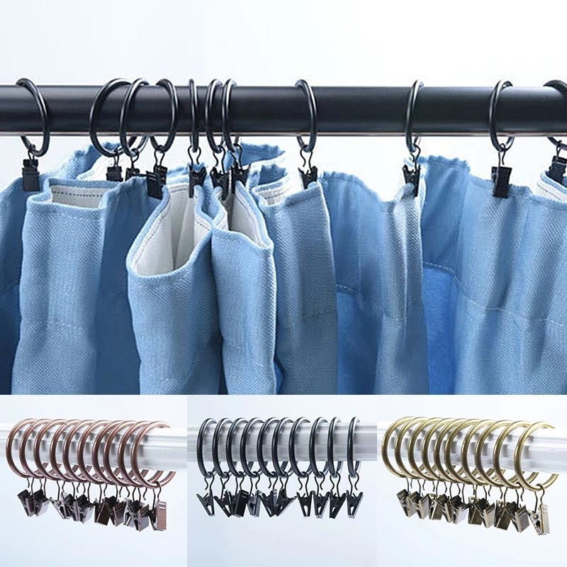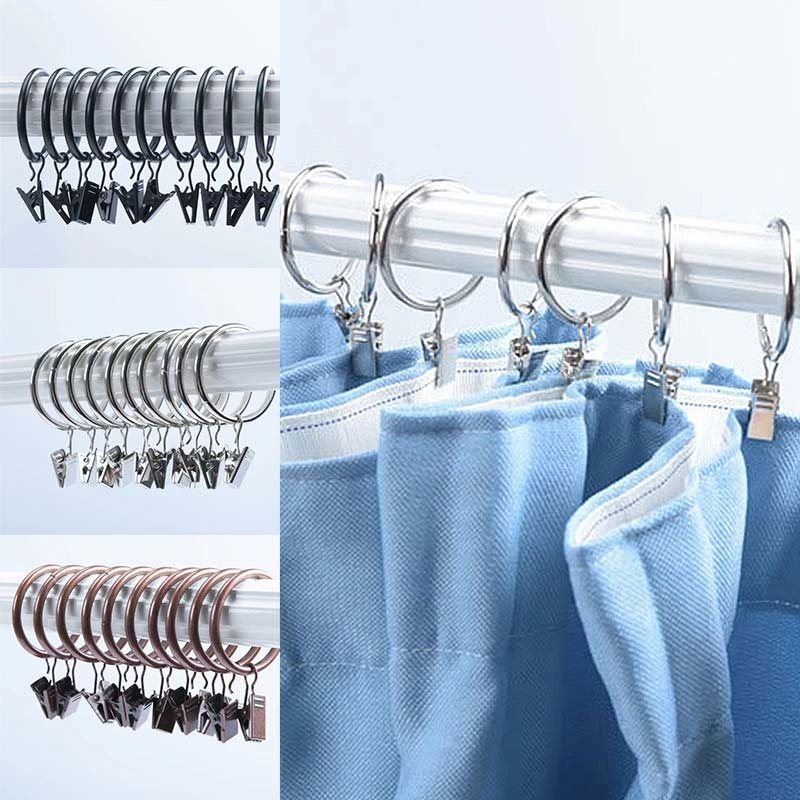 10 peças de anéis para cortinas de duche com clipes - Ganchos de ferro resistentes à ferrugem, 25 mm