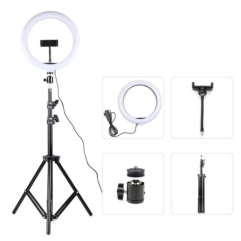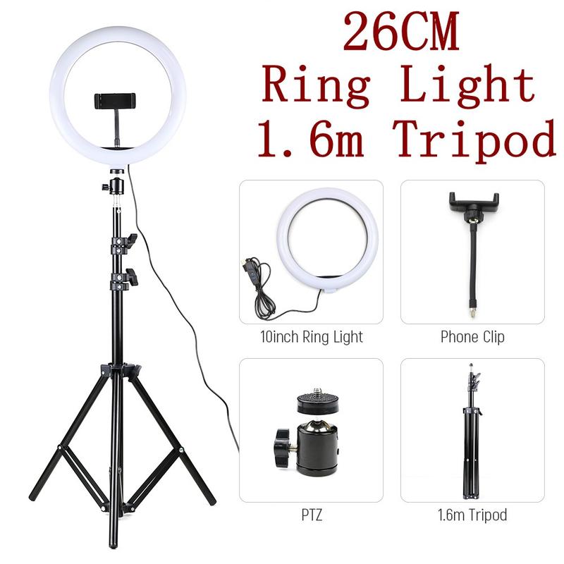 Anel luminoso de 10" alimentado por USB com suporte de tripé telescópico de 160cm para filmagens de vídeo em direto