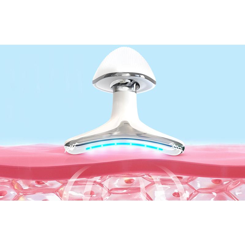 Este prático massajador revelar-se-á útil em muitas aplicações. Com a sua ajuda, pode cuidar não só do seu pescoço, mas também do pescoço, da testa e das bochechas. Isto irá cuidar de forma abrangente da aparência e condição da sua pele. Faça uma massagem relaxante, uma limpeza profunda e uma terapia de luz eficaz para se deliciar com uma tez suave e firme.