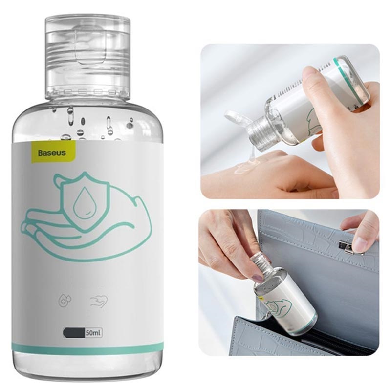 A higiene é importante, mesmo quando estiver em movimento. O gel desinfetante antibacteriano para mãos Baseus é feito com 75% de álcool, eliminando 99,99% dos germes. O gel é compacto e cabe facilmente em qualquer bolso ou mala. Simplesmente coloque uma pequena quantidade de gel nas mãos, esfregue as mãos passando por todas as superfícies das duas mãos e esteja seguro de que as suas mãos forma desinfetadas adequadamente.