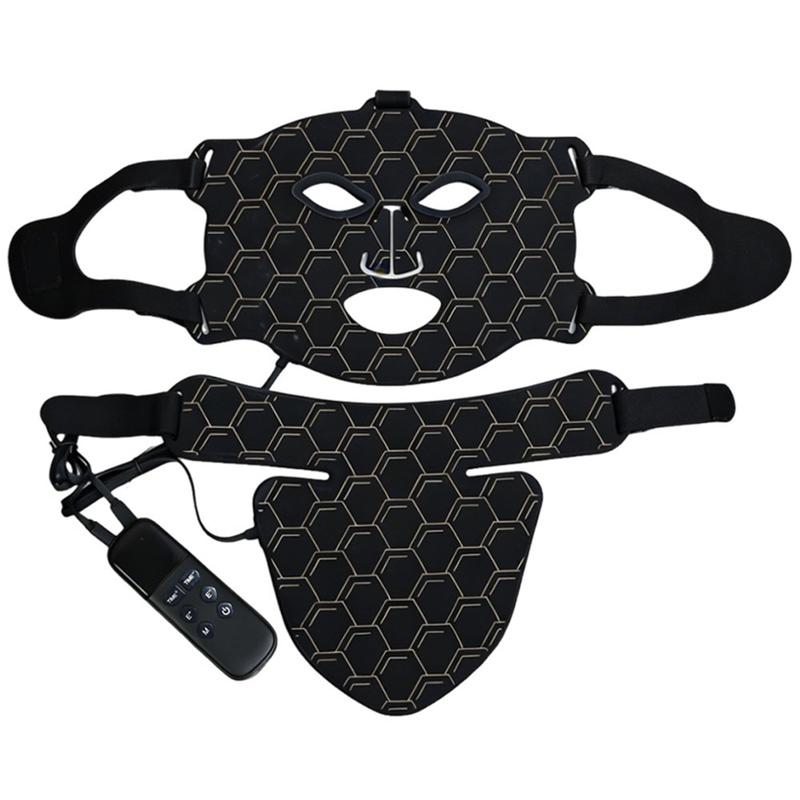Máscara facial e para o pescoço com terapia de luz LED de 7 cores - Aparelho de beleza facial em silicone com 160 LED e controlo remoto