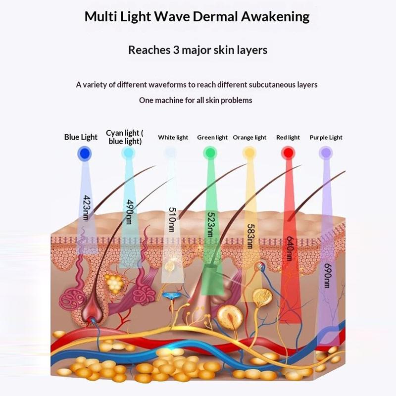 - Aparelho de beleza para rosto e pescoço com terapia de luz LED de 7 cores