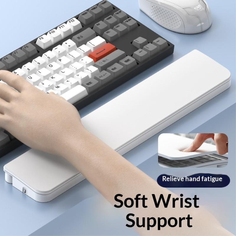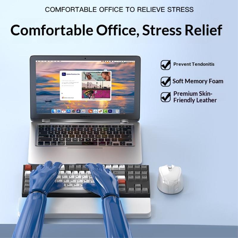 O apoio para o pulso é fabricado com polietileno macio e enchimento de espuma de alta qualidade para fornecer um apoio suave e estável ao pulso. O seu design ergonómico ajuda a reduzir a pressão e a fadiga durante a digitação prolongada, trabalho de escritório ou sessões de estudo.