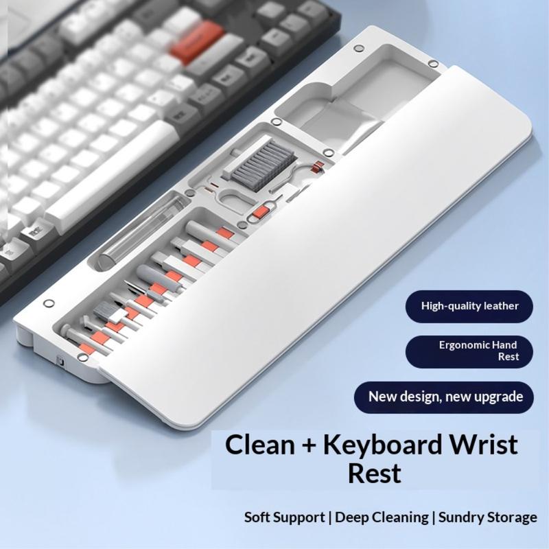 Apoio de pulso multifuncional para teclado com kit de limpeza de 22 unidades e suporte para telemóvel