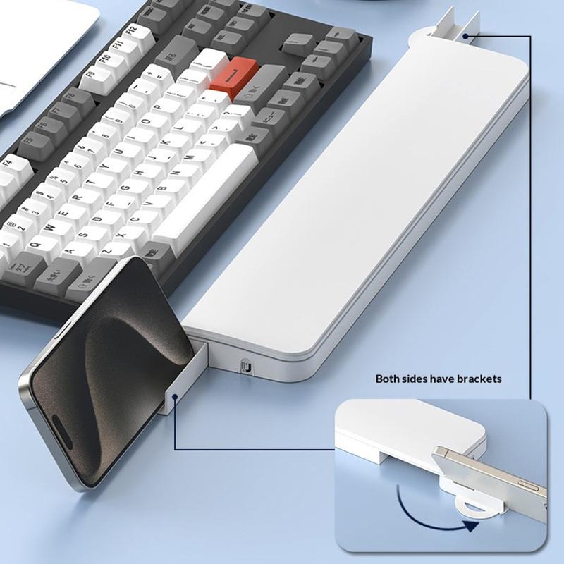 O apoio multifuncional para o pulso do teclado em poliuretano e o organizador do kit de limpeza foram concebidos para combinar o conforto quotidiano com a organização prática da secretária. Funcionando como um apoio de pulso macio para o teclado e como uma caixa de arrumação oculta para ferramentas de limpeza, apoia o posicionamento correto do pulso, mantendo o seu espaço de trabalho limpo e arrumado durante longas horas de trabalho ou de jogo.