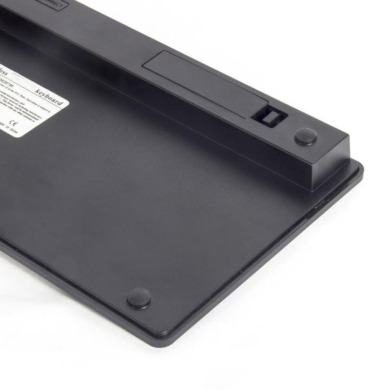 O teclado usa 2 pilhas AA (não incluídas), oferecendo uma longa duração da bateria sem a necessidade de cabos de carregamento.