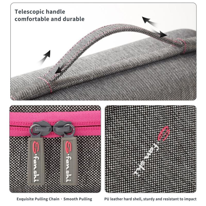 Compacto e portátil: Com uma pega telescópica, o estojo é fácil de transportar, proporcionando um espaço amplo para guardar os seus auscultadores em segurança