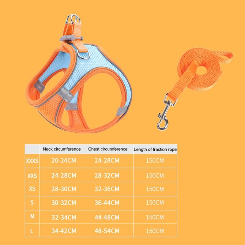 Arnês refletor para gatos e cães com trela / Colete de malha respirável para animais de estimação