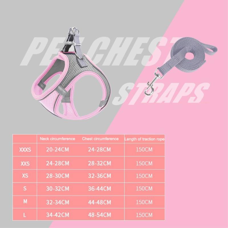 Arnês refletor para gatos e cães com trela / Colete de malha respirável para animais de estimação
