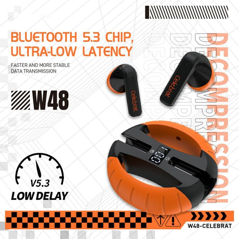 Celebrat W48 Auscultadores sem fios com pega para as mãos e Bluetooth 5.3, estojo de carregamento de 300mAh