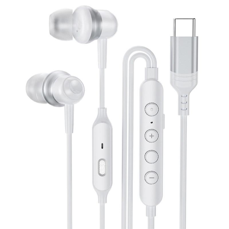 Auscultadores com fio tipo C GC0098 com microfone - Auscultadores magnéticos para jogos com graves profundos de 150 cm