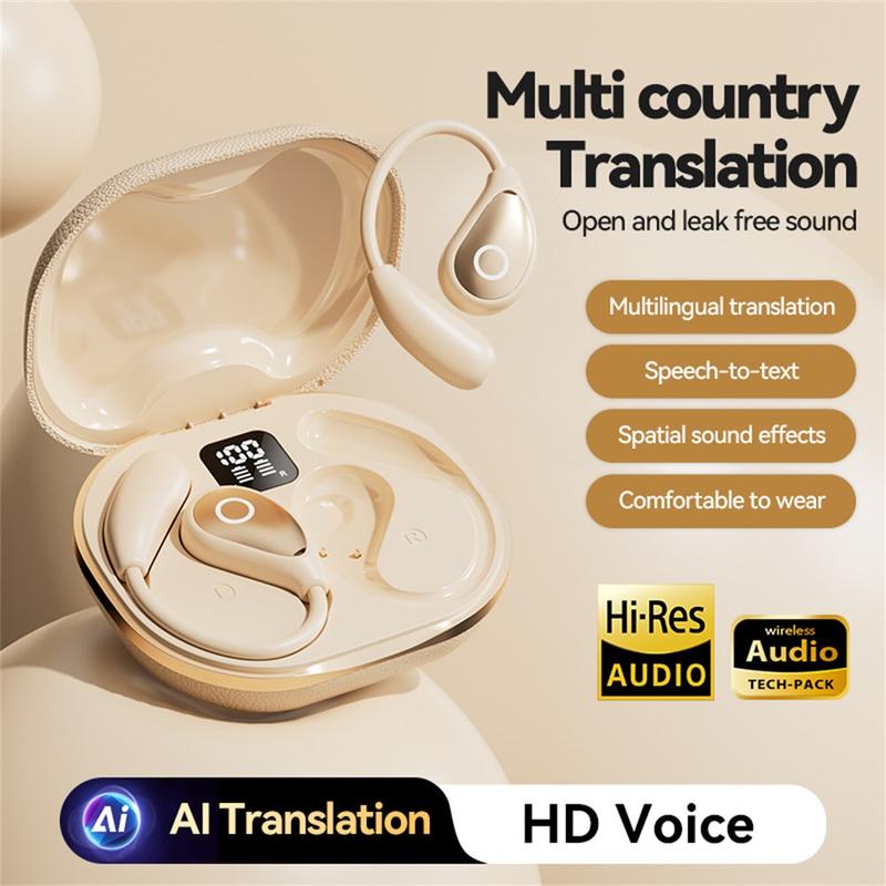 Auscultadores desportivos M95 com tradutor de IA de 144 idiomas - Auscultadores com gancho de orelha Bluetooth 5.4, visor digital da bateria
