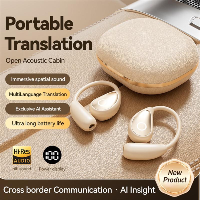 Auscultadores desportivos M95 com tradutor de IA de 144 idiomas - Auscultadores com gancho de orelha Bluetooth 5.4, visor digital da bateria