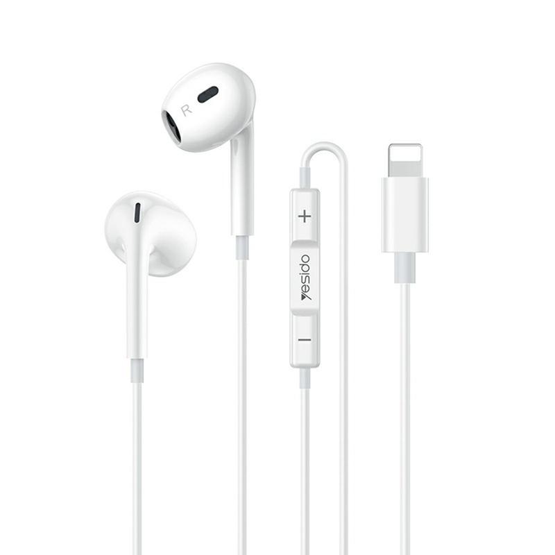 Auscultadores com fio Yesido YH51 Lightning - Auscultadores intra-auriculares com driver dinâmico de 14 mm, microfone e controlos multifuncionais (1,2 m)