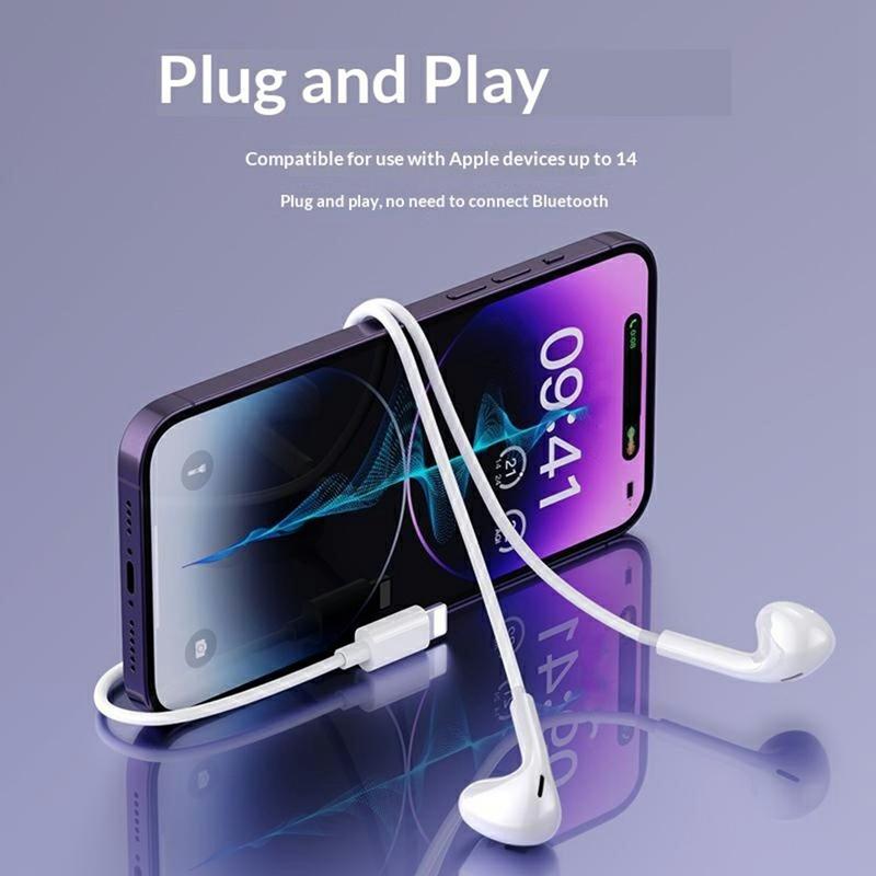 Se prefere a simplicidade do áudio com fios, o YH51 é uma excelente escolha: ligação instantânea, sem preocupações com a bateria e som consistente. O grande driver de 14 mm adiciona graves satisfatórios, o microfone mantém as chamadas nítidas e os controlos integrados tornam o uso diário fácil — um ótimo valor para quem deseja auscultadores Lightning confiáveis.