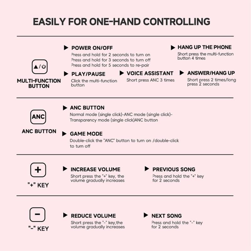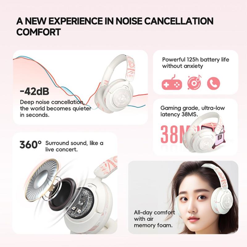 Auscultadores para jogos sem fios com ANC e Bluetooth 5.4 GT1