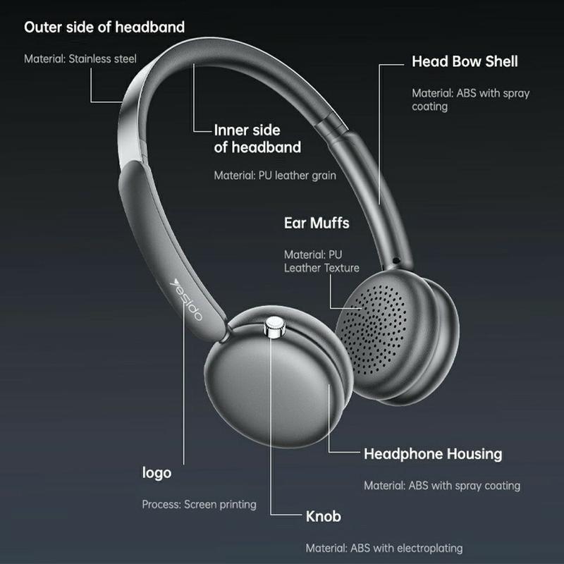 Auscultadores sem fios Yesido EP13 com ANC+ENC - Drivers de titânio de 40 mm, bateria com 50 horas de autonomia, BT 5.3, modo de jogo, controlo rotativo