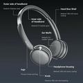 - Os designs sobre a orelha proporcionam isolamento passivo mesmo antes de o ANC ser ativado, graças à vedação do auricular em torno da orelha.