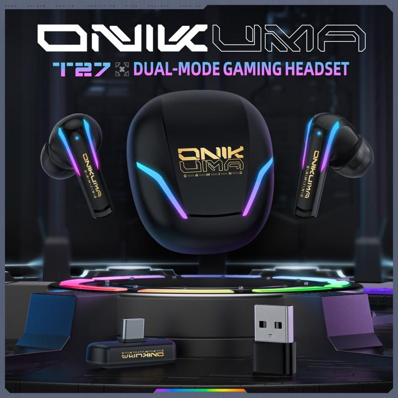 Auscultadores sem fios para jogos Onikuma T27 - 2,4G/Bluetooth 5.3, baixa latência, drivers de 13 mm, IPX4, carregamento USB-C