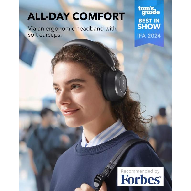 O Soundcore Space One Pro também oferece uma experiência auditiva mais refinada com drivers avançados ajustados para um som equilibrado e suporte LDAC para áudio sem fios de maior qualidade. Combinados com almofadas de espuma viscoelástica macias, uma banda de cabeça com suporte e carregamento rápido que proporciona até 8 horas de reprodução em apenas 5 minutos, estes auscultadores oferecem uma forte combinação de desempenho, portabilidade e conveniência no dia a dia.