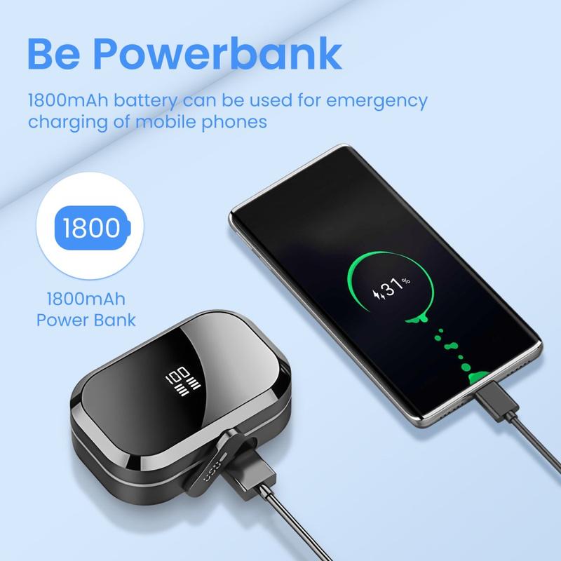 Auscultadores sem fios Q25 com estojo de carregamento com função de power bank - Auscultadores Bluetooth 5.2 com ecrã LED e 3 modos de som