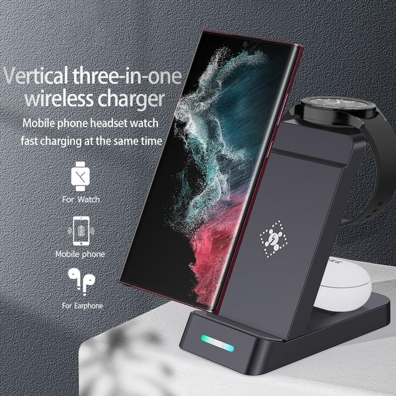 - Estação de carregamento sem fios 3 em 1: Carrega telefones, relógios e botões Samsung Galaxy de uma só vez com um único cabo, simplificando sua configuração.