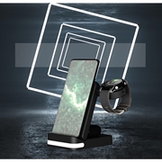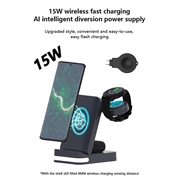B-27 Carregador sem fios dobrável 3 em 1 com luz nocturna - 15W - Carregamento rápido para smartphones, auriculares e Samsung Galaxy Watch