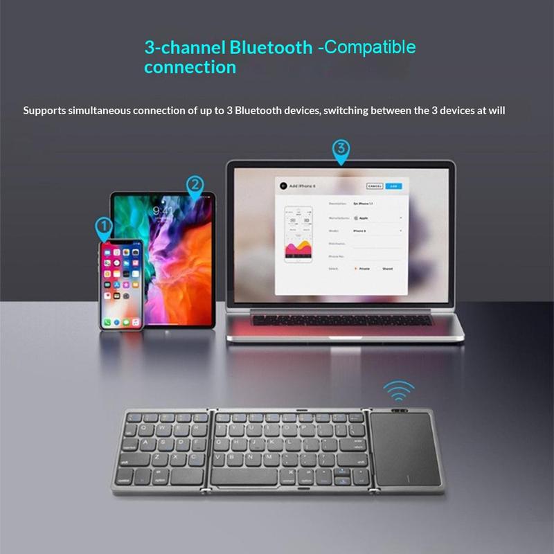Teclado sem fios dobrável B089 com touchpad (81 teclas) - QWERTY, compatível com Bluetooth para vários dispositivos, recarregável por USB-C, teclas silenciosas