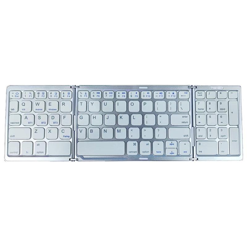 B089 Teclado Bluetooth portátil com três dobras e teclado numérico - Teclado sem fios de 81 teclas para casa, escritório, tablet e telemóvel