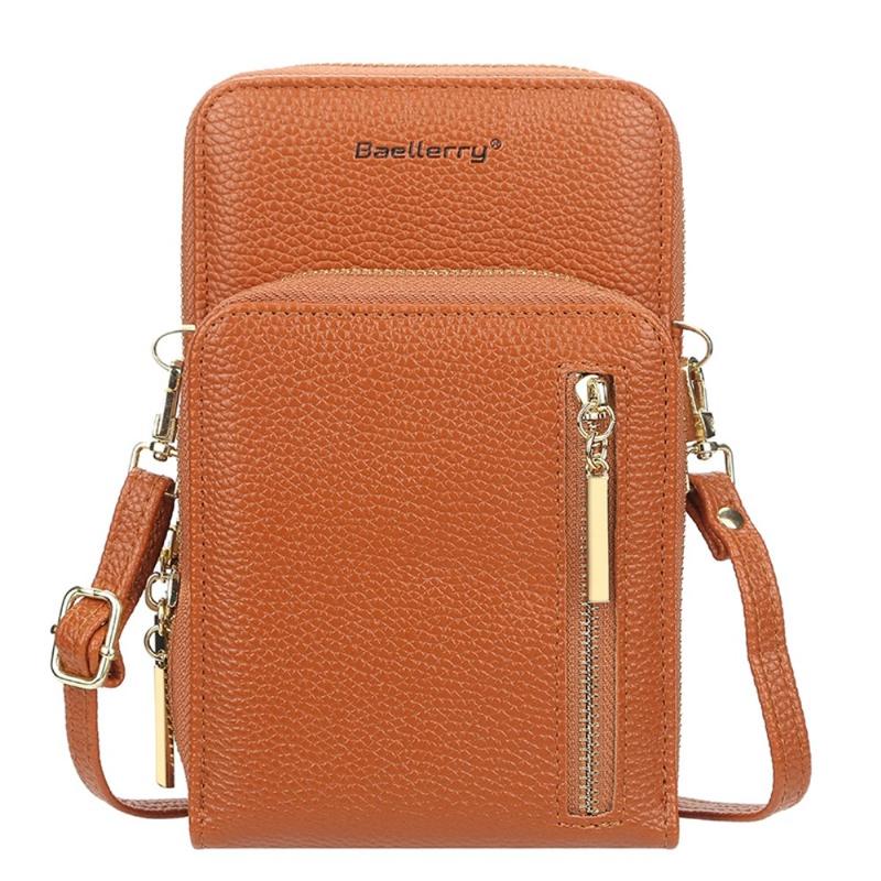 BAELLERRY N0110 Women Double Layer Zipper Wallet PU Leather Cellphone Purse with Shoulder Strap - Brown