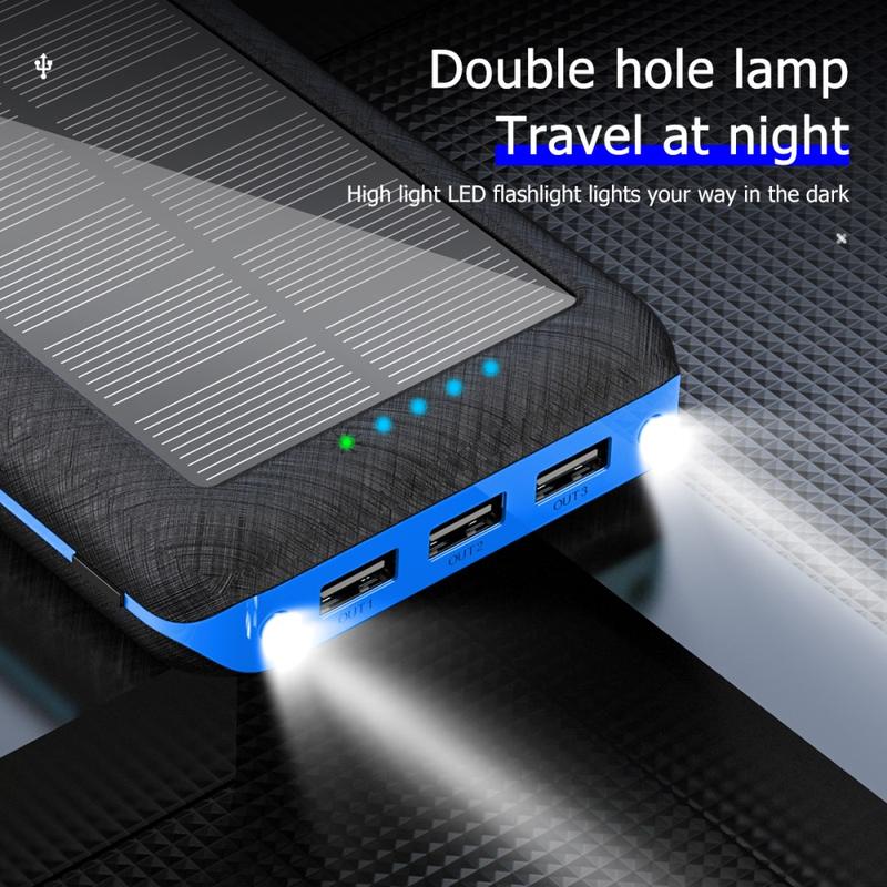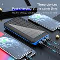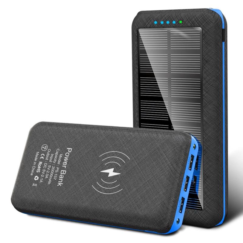 Banco de energia solar 20000mAh com carregamento sem fios, 3 portas USB, lanterna LED dupla