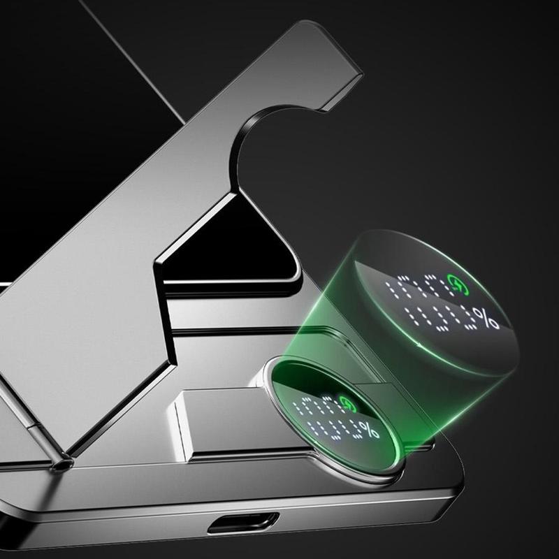 Perfeito para viajantes frequentes, trabalhadores pendulares e entusiastas da tecnologia que dependem de vários dispositivos diariamente. O design fino cabe facilmente em bolsos e bolsas, enquanto o suporte dobrável torna-o igualmente adequado para uso no escritório ou em casa.