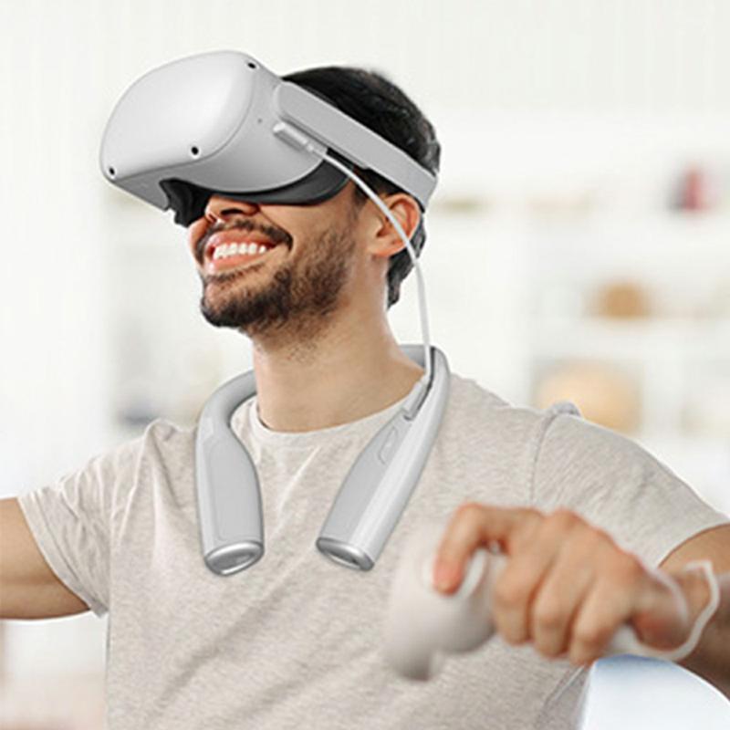 - Design ergonómico para montagem no pescoço: O carregador de montagem no pescoço foi concebido para proporcionar conforto durante longas sessões de RV, distribuindo o peso uniformemente para uma experiência confortável.