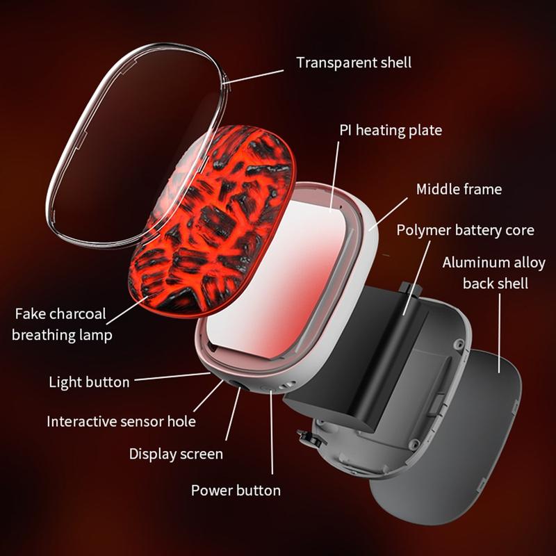 Banco de potência e aquecedor de mãos elétrico X6 10000mAh - Design de fogo a carvão, 3 temperaturas, 2A USB-A
