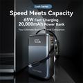 Voos longos, reuniões consecutivas ou caminhadas de fim de semana - seja qual for o horário, esta bateria de 20000mAh mantém a sua tecnologia viva. Um cabo USB-C incorporado, uma saída rápida de 65W e um ecrã digital nítido significam menos confusão e zero adivinhações quando se trata de carregar.