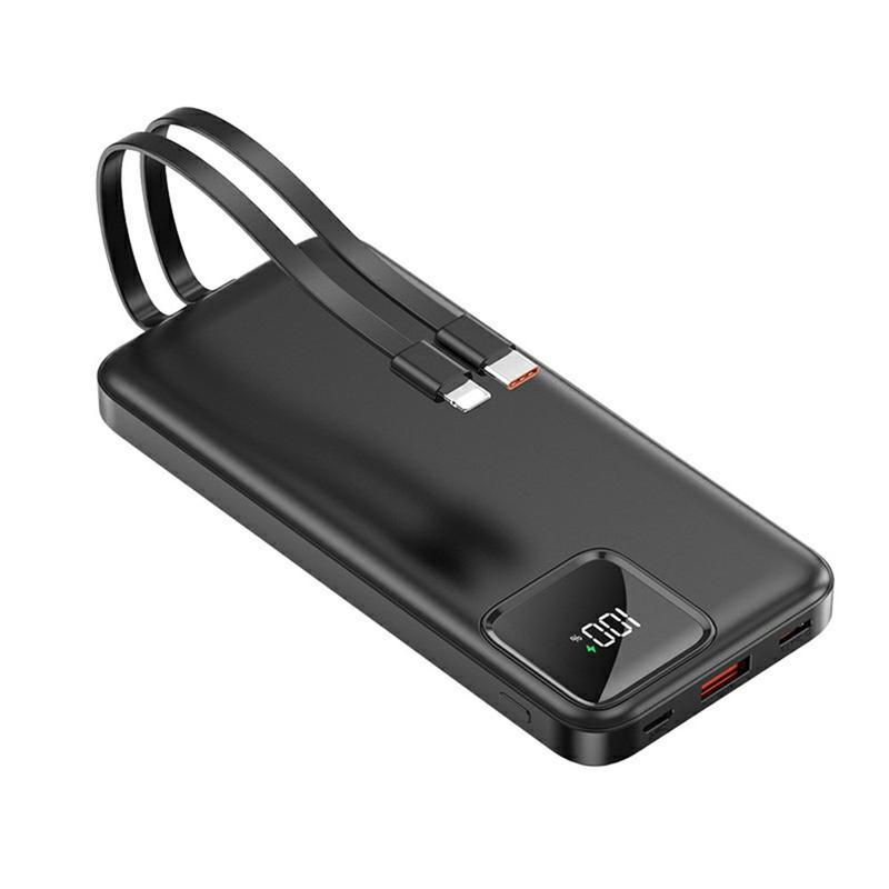 Banco de potência S38N Slim 10000mAh - Carregamento rápido de 22.5W com cabos USB-C e Lightning integrados, ecrã digital da bateria, saída multiporta