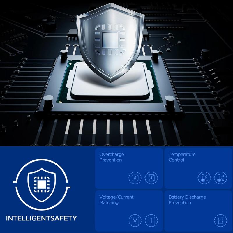 O sistema inteligente Quantum Boost reconhece automaticamente os seus dispositivos ligados e ajusta os parâmetros de carregamento para uma velocidade, eficiência e segurança ideais, garantindo a saúde da bateria a longo prazo.