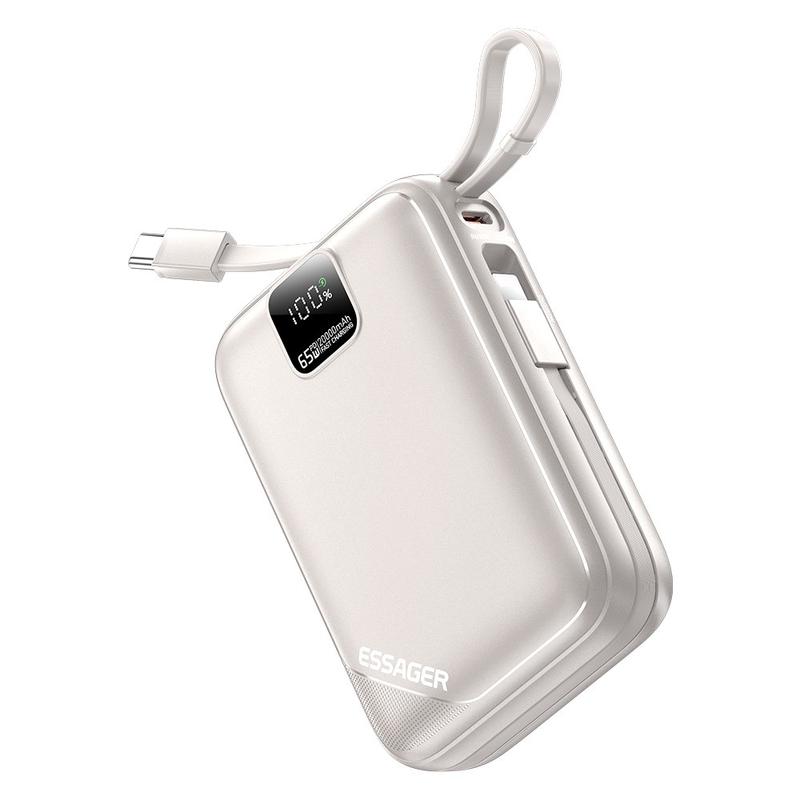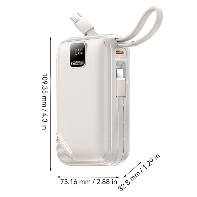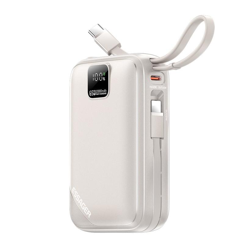 O banco de potência ESSAGER PD 65W combina carregamento rápido ao nível do portátil, cabos duplos incorporados, alta capacidade e monitorização LED inteligente - tornando-o na derradeira solução de carregamento tudo-em-um para viagens, trabalho e transporte diário.