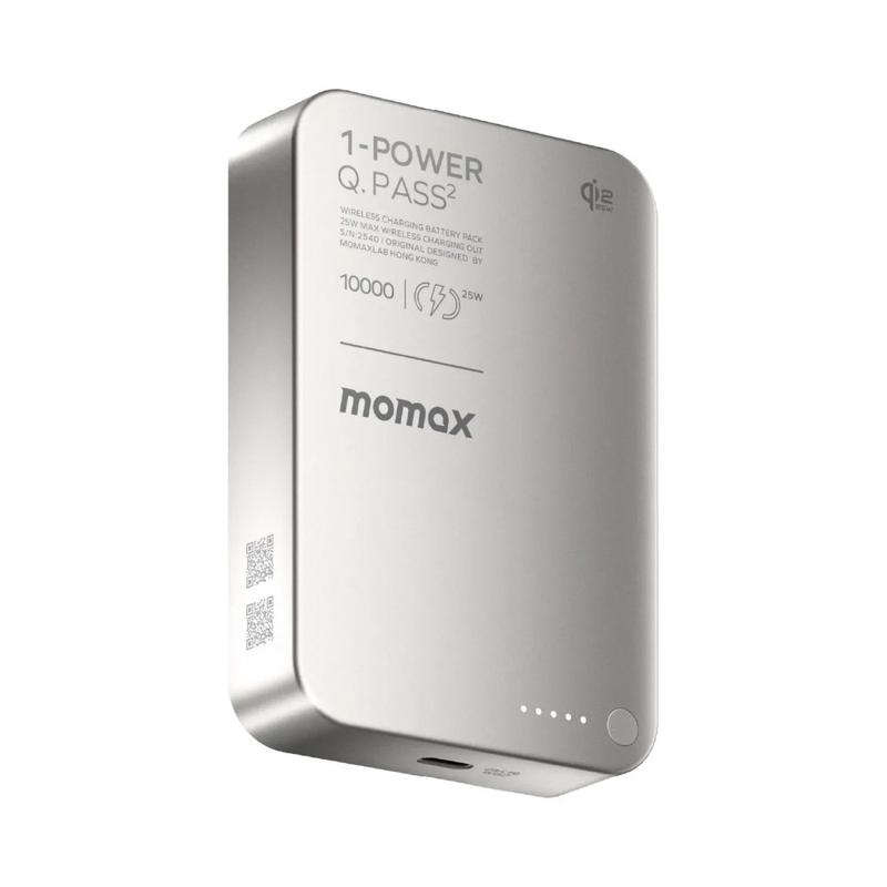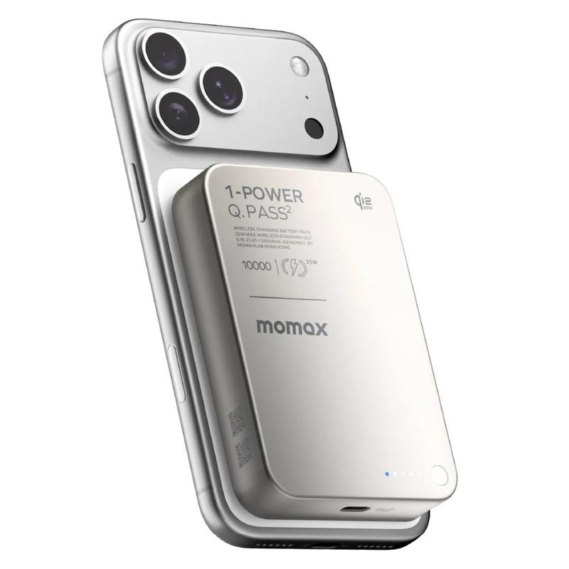 Banco de potência magnético sem fios Momax 1-Power Q.Pass2 Qi2.2 25W 10000mAh - USB-C PD 30W, carregamento de encaixe para iPhone 12-17 Series