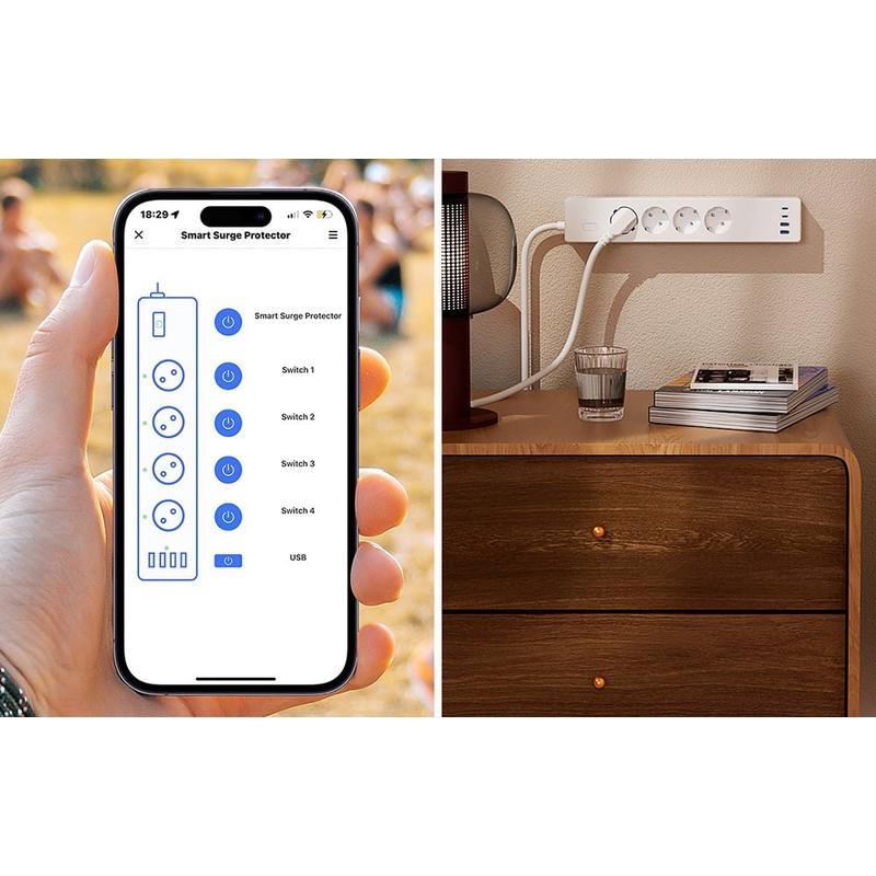 Utilizando a aplicação Meross ou um ecossistema compatível com Matter, pode ligar ou desligar de forma independente cada uma das quatro tomadas, bem como controlar o grupo de portas USB. Faça a gestão dos seus dispositivos a partir de qualquer lugar - quer esteja em casa, no trabalho ou em viagem.