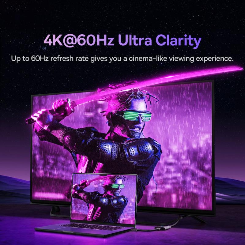 - Saída Ultra HD 4K@60Hz: Oferece visuais vívidos e detalhados para jogos, streaming e apresentações.