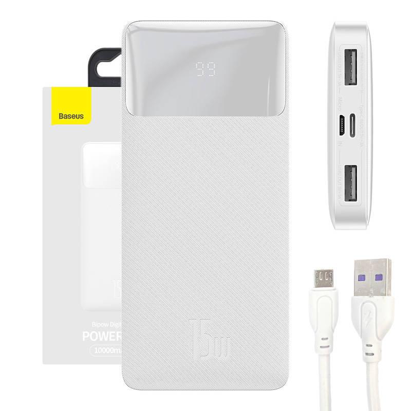 PowerBank Baseus Bipow 10000mAh, 2xUSB, USB-C, 15W (branco)
