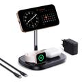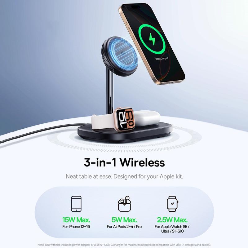 - Carregamento triplo de dispositivos: Carrega o smartphone, os auriculares TWS (até 5 W) e o relógio (até 2,5 W) em simultâneo, poupando espaço e tempo.