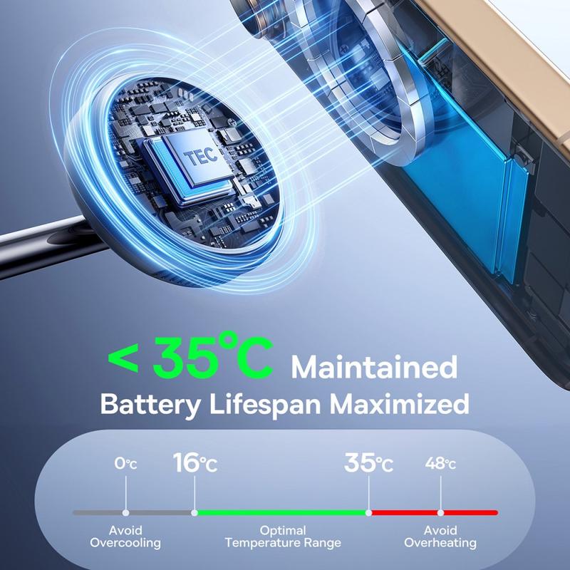 - Tecnologia de arrefecimento CryoCore: Mantém o desempenho de carregamento ideal ao dissipar eficazmente o calor para um carregamento mais seguro e eficiente.