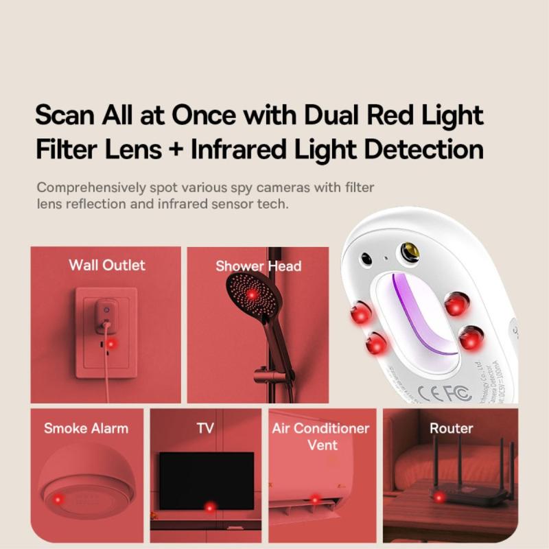 - Chip de sensor 3D com dupla atualização: Captura com precisão dispositivos de vigilância ocultos com sensibilidade melhorada, não deixando nenhuma câmara espiã sem ser detectada.