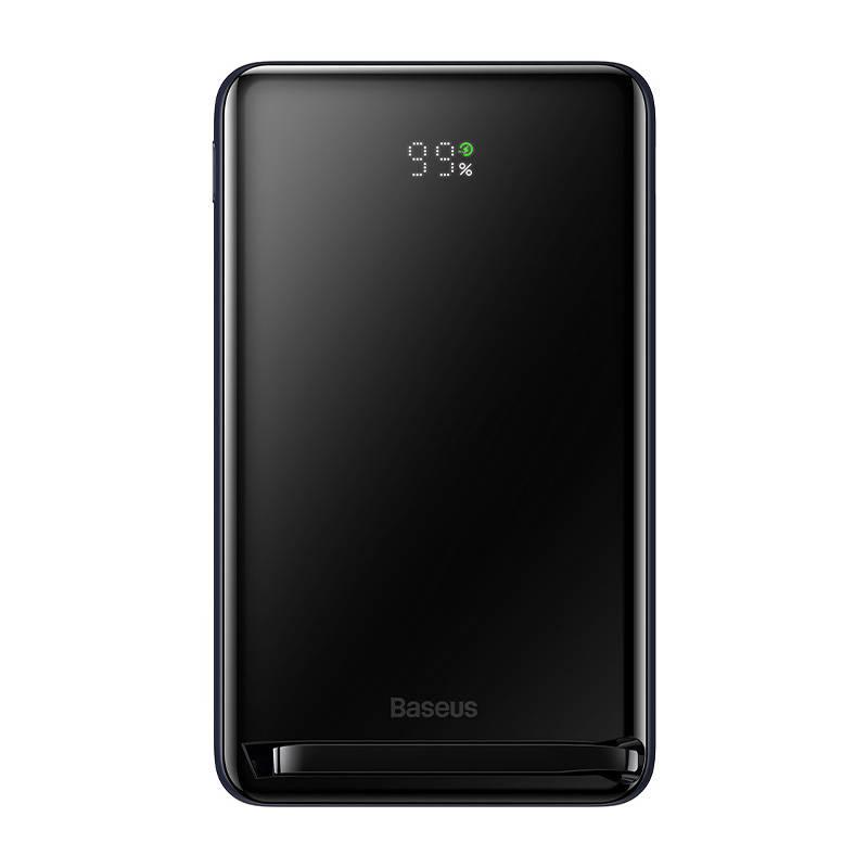 Equipa-se com o amplo powerbank Baseus Magnetic, que possui uma porta USB-C e também permite o carregamento sem fio rápido e seguro, com uma potência máxima de 15W. A powerbank suporta o protocolo de carregamento rápido PD 20W e a sua capacidade é de 10.000 mAh. Um ecrã prático fornece informações sobre o estado da bateria e, graças ao suporte dobrável, o produto funciona bem como suporte para telemóvel.