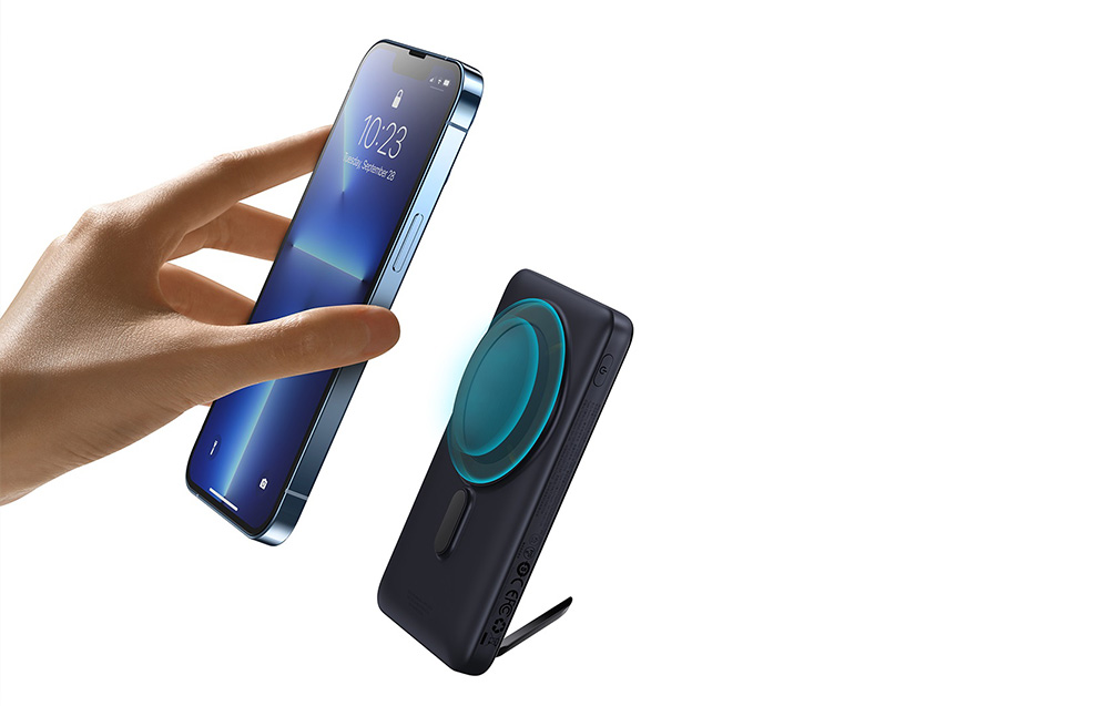 O powerbank renovará a energia de muitos dispositivos diferentes num curto espaço de tempo. Pode carregar smartphones ou tablets com fios com uma potência máxima de 20Watts. O carregamento indutivo com uma potência máxima de 15W será adequado para smartphones ou AirPods.